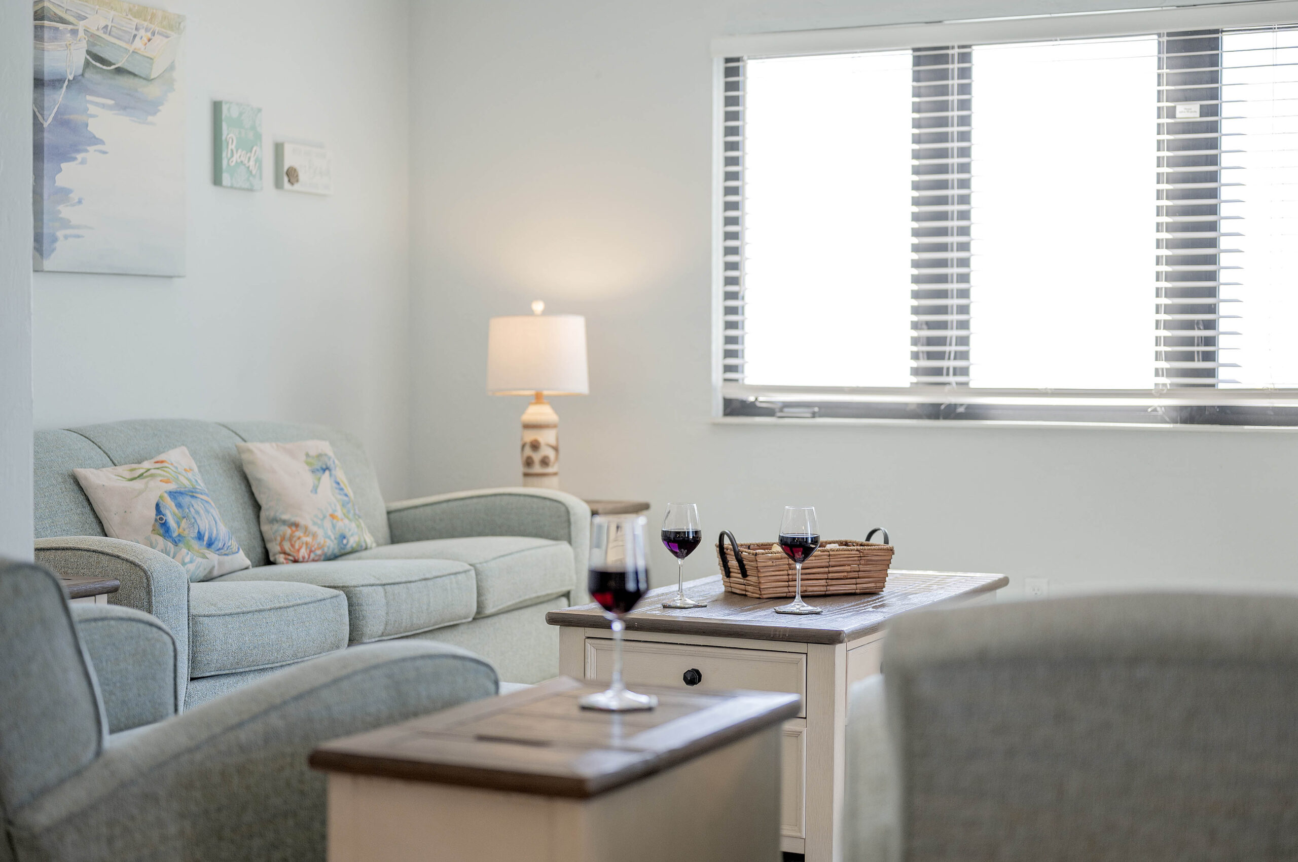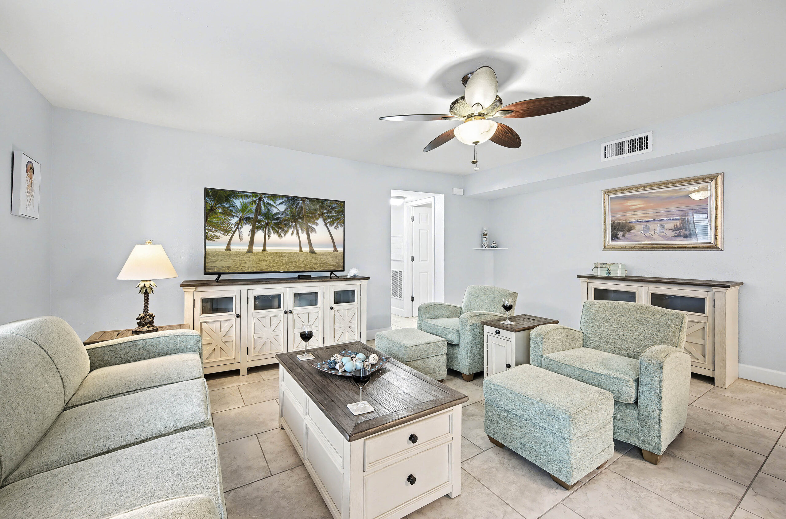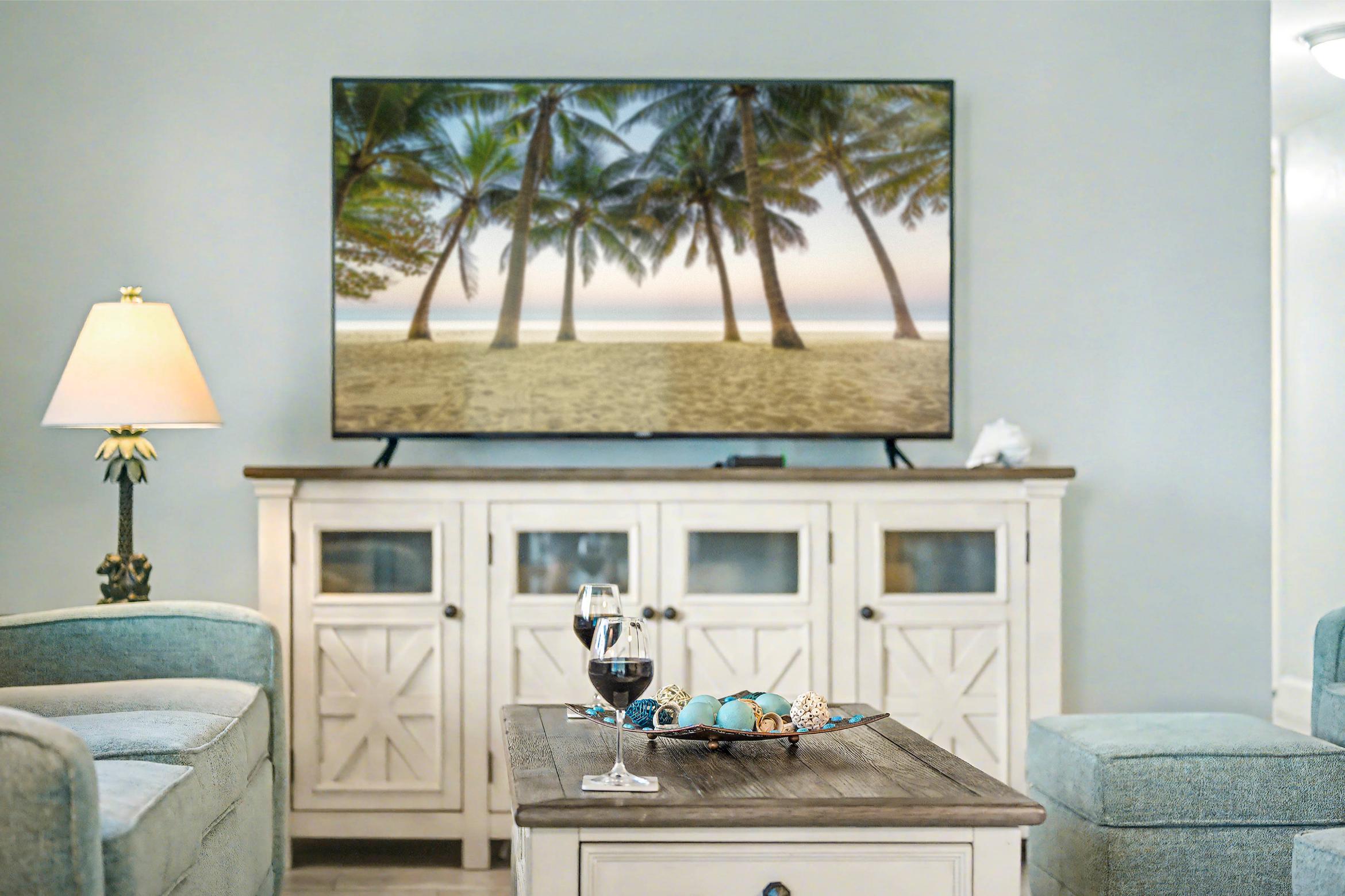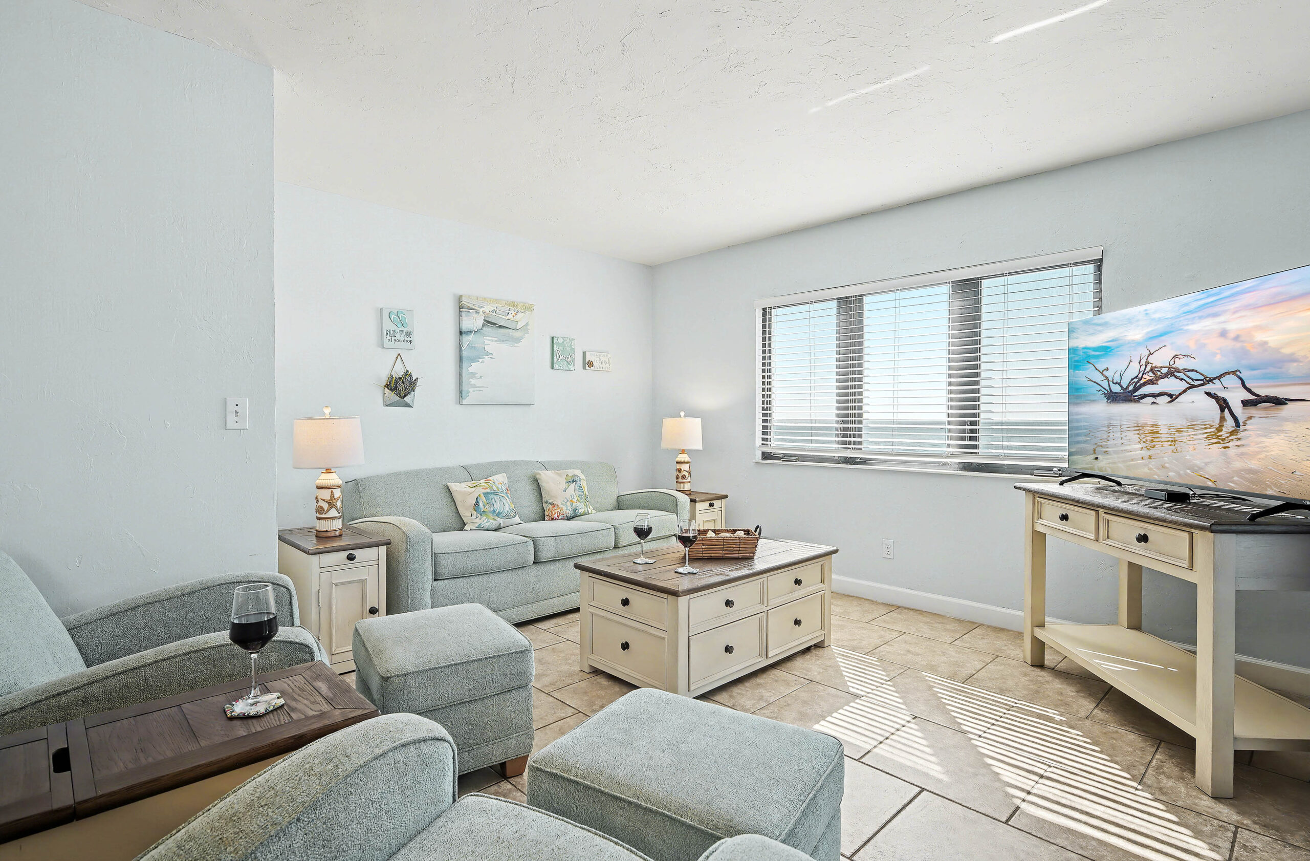Beachfront Unit–Living Room with Beach View and Smart Flatscreen TV