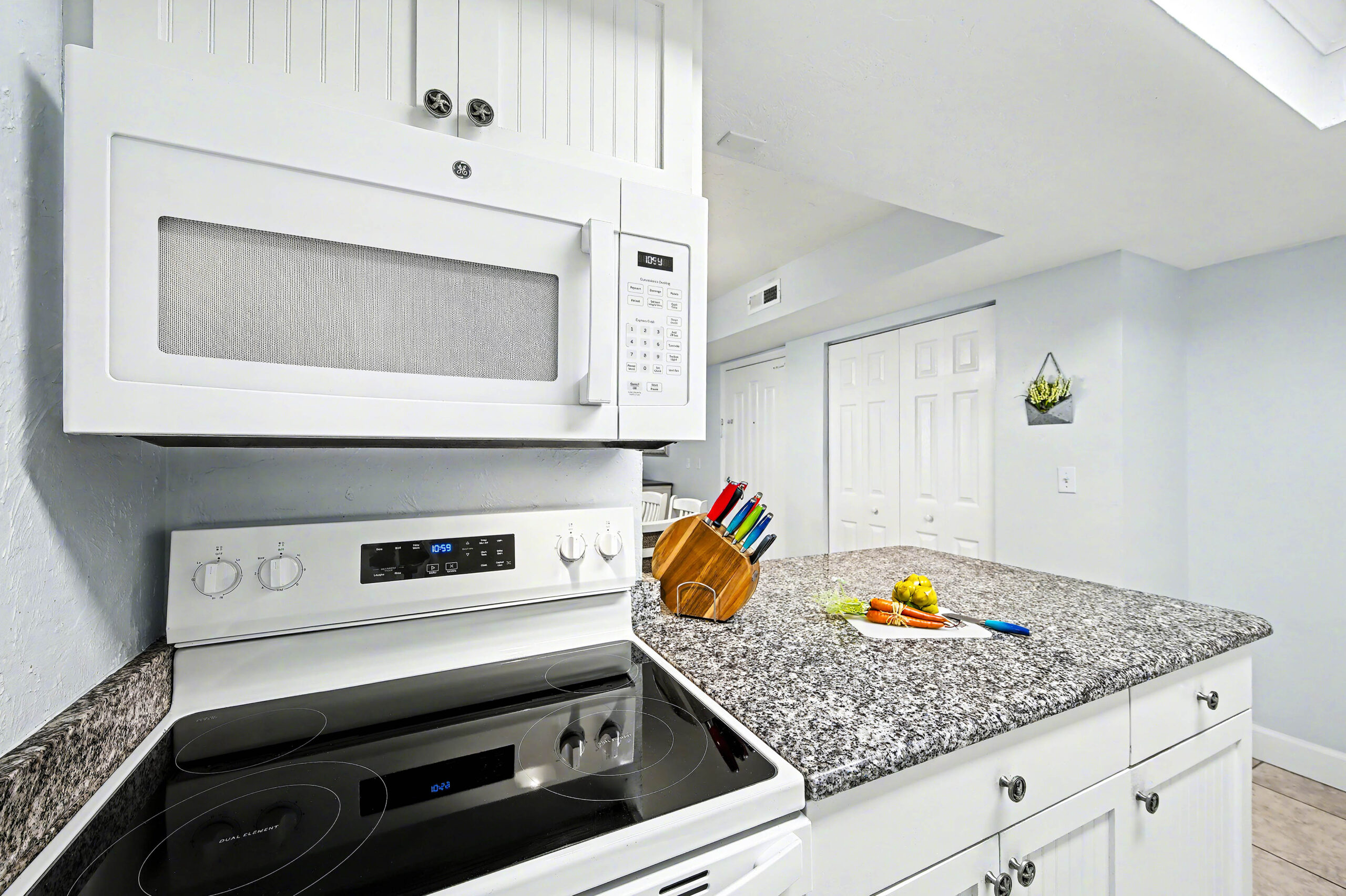 Pool Side Unit–Kitchen Stove, Microwave, and Bar